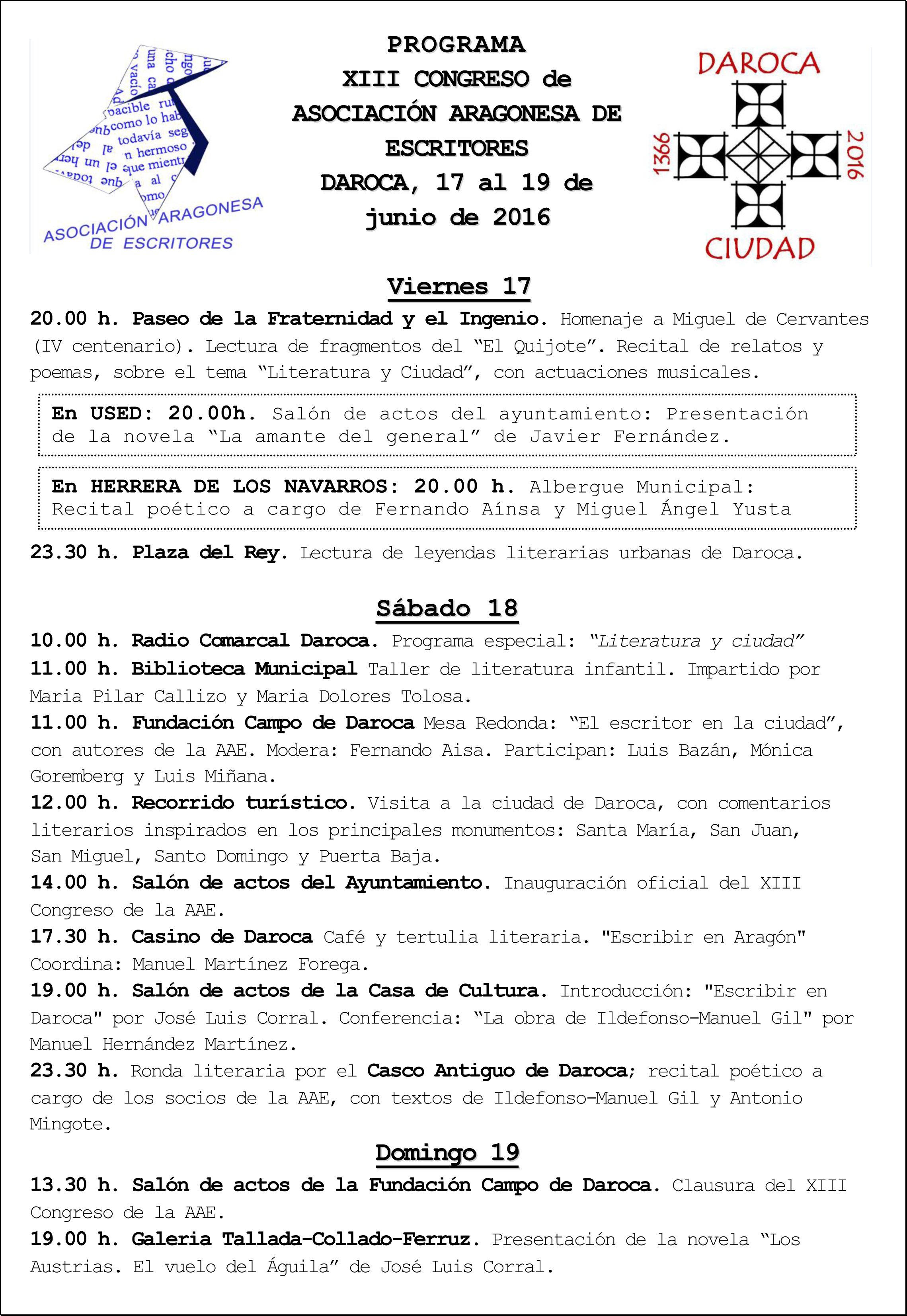Congreso de la AAE en Daroca – programa