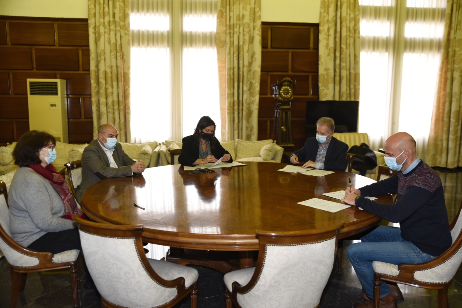La vicepresidenta del Patronato Municipal de Educación y Bibliotecas, y concejala de Educación, Paloma Espinosa; el presidente de la Asociación Aragonesa de Escritores, Javier Fernández, y el presidente de la Asociación de Librerías de Zaragoza, Óscar Martín, han firmado este convenio tras una reunión mantenida esta mañana en el Ayuntamiento de Zaragoza, a la que también han asistido Javier Peiro, gerente del Patronato Municipal de Educación y Bibliotecas; y Pilar Bes, coordinadora de la red de bibliotecas municipales.